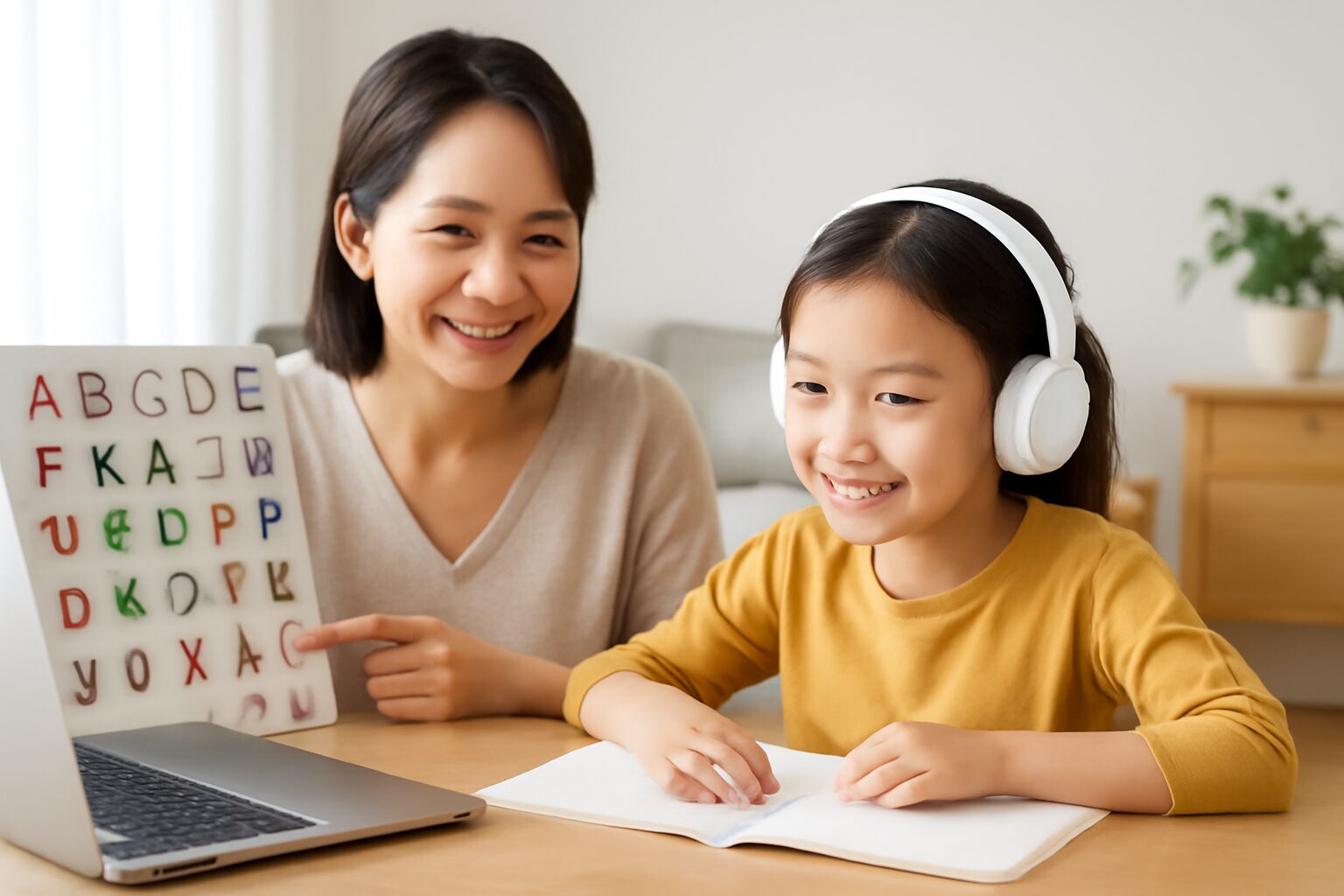 「最初はオンラインで大丈夫かなと不安でしたが、先生が優しく丁寧に教えてくれるので、娘もすぐに慣れました。発音がきれいになったのはもちろん、英語で話すことに自信を持つようになったのが嬉しいです。」(Aさん、7歳のお子様のお母様)