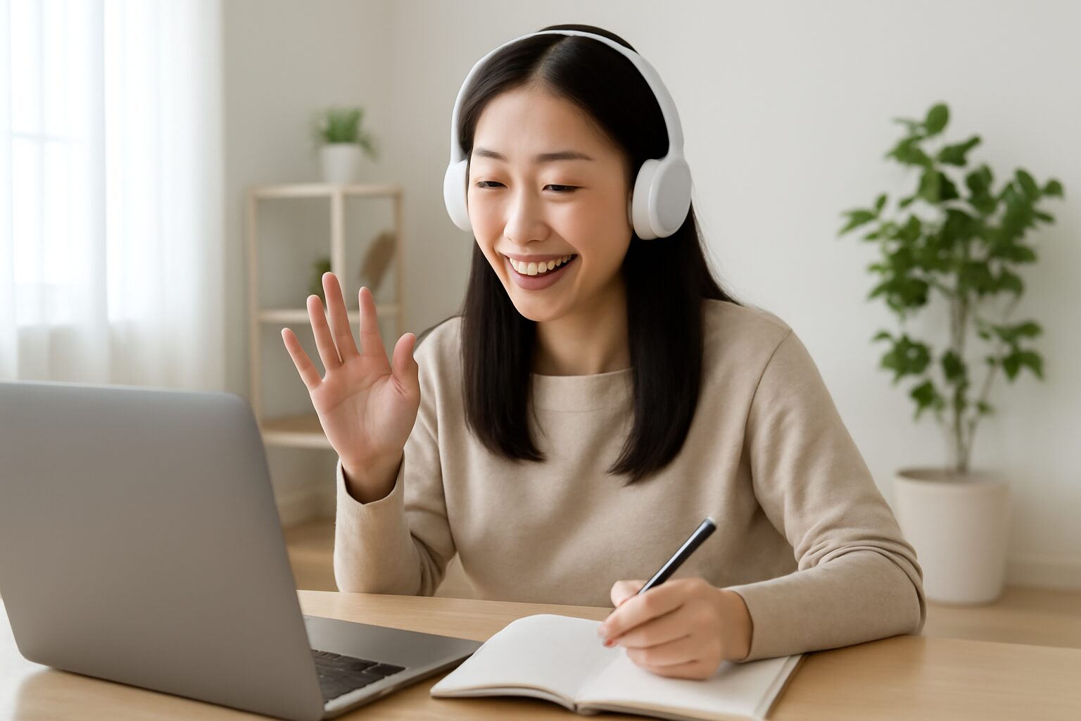 - A. スマホ、タブレット、PCのいずれかと、インターネット環境があればOKです。ヘッドセットやマイクがあると、より快適にレッスンを受けられます。